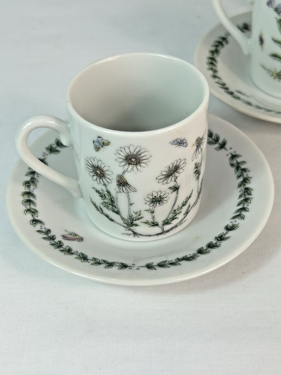 Vintage TAKAHASHI Espresso Demitasse Cup & Saucer Floral - Japan - Set of 4