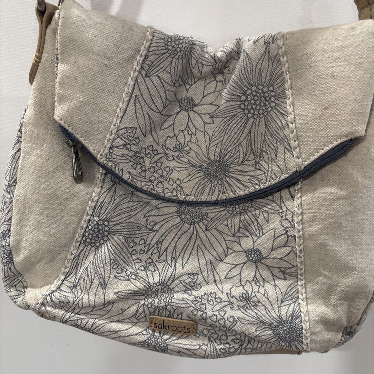 Sakroots Foldover Crossbody Blue Floral Print/Cream-adjustable Strap