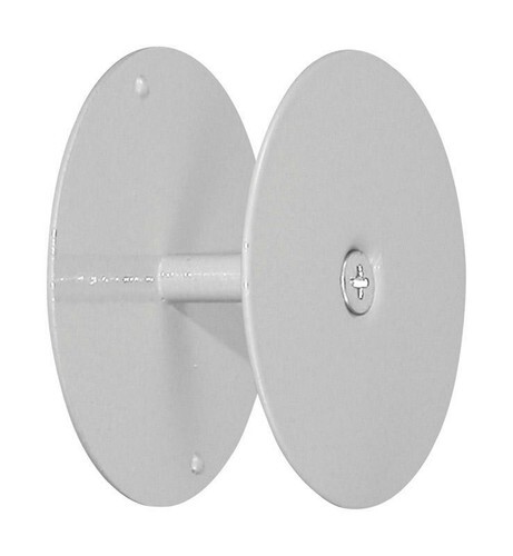 This Defender Security 2-5/8 inch. Bore Hole Cover is made of steel and has been painted gray. It is designed to cover holes from 1/2 inch to 2-1/8 inch and fits on doors up to 1/3-4 inch thick.