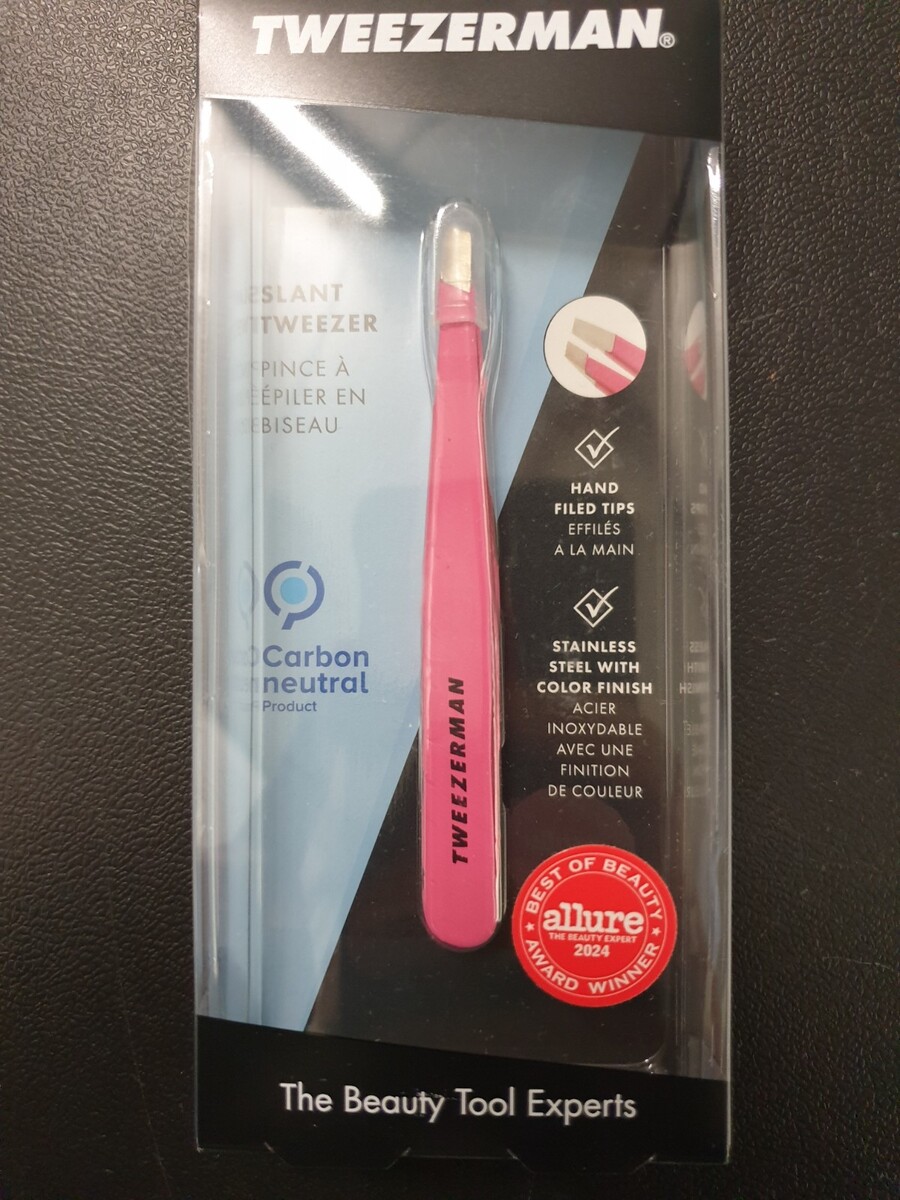 Tweezerman Slant Tweezer Pink Hand Filed Tips Stainless Steel High Precision
