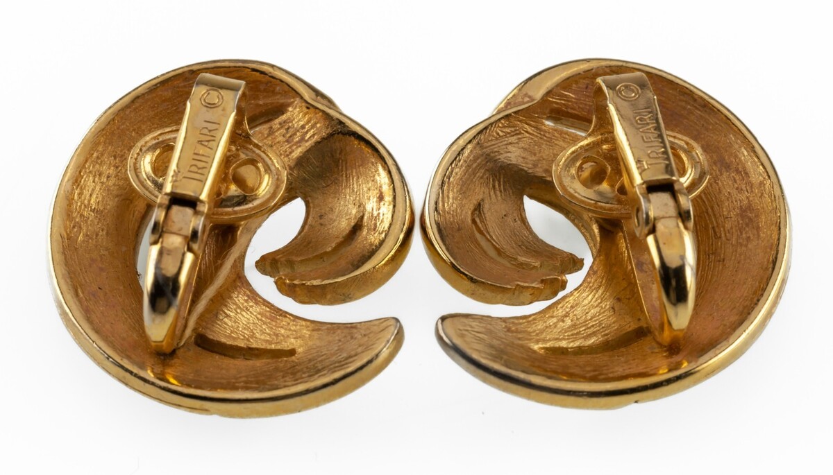 Trifari Vintage Goldfarbig Schwarz Emaille Wirbel Kostüm Ohrringe