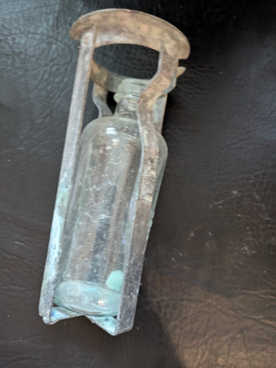 Antique Soda Acide Feu Extincteur Verre Transparent Bouteille & Câble Bouchon