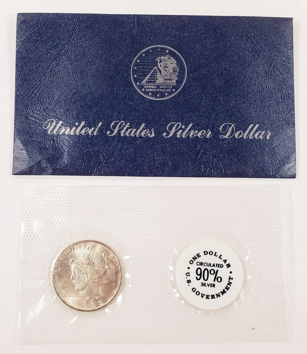 1923 Argent Paix Dollar Gsa Softpack Enveloppe COA Inclus
