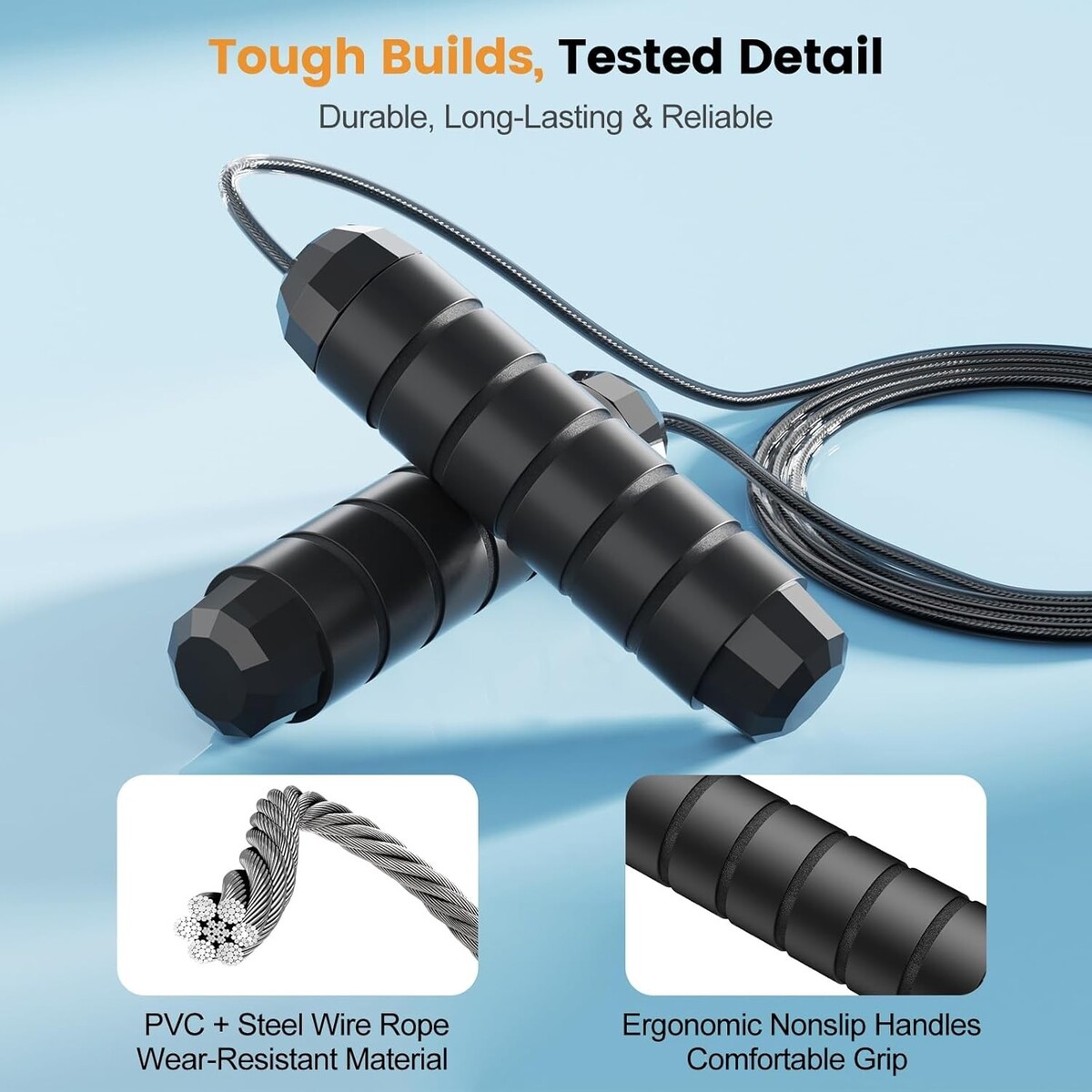 Durable Build Tangle-Free Jump: Crafted with a steel wire rope coated in strong PVC for enhanced durability during even the most intense workouts.
