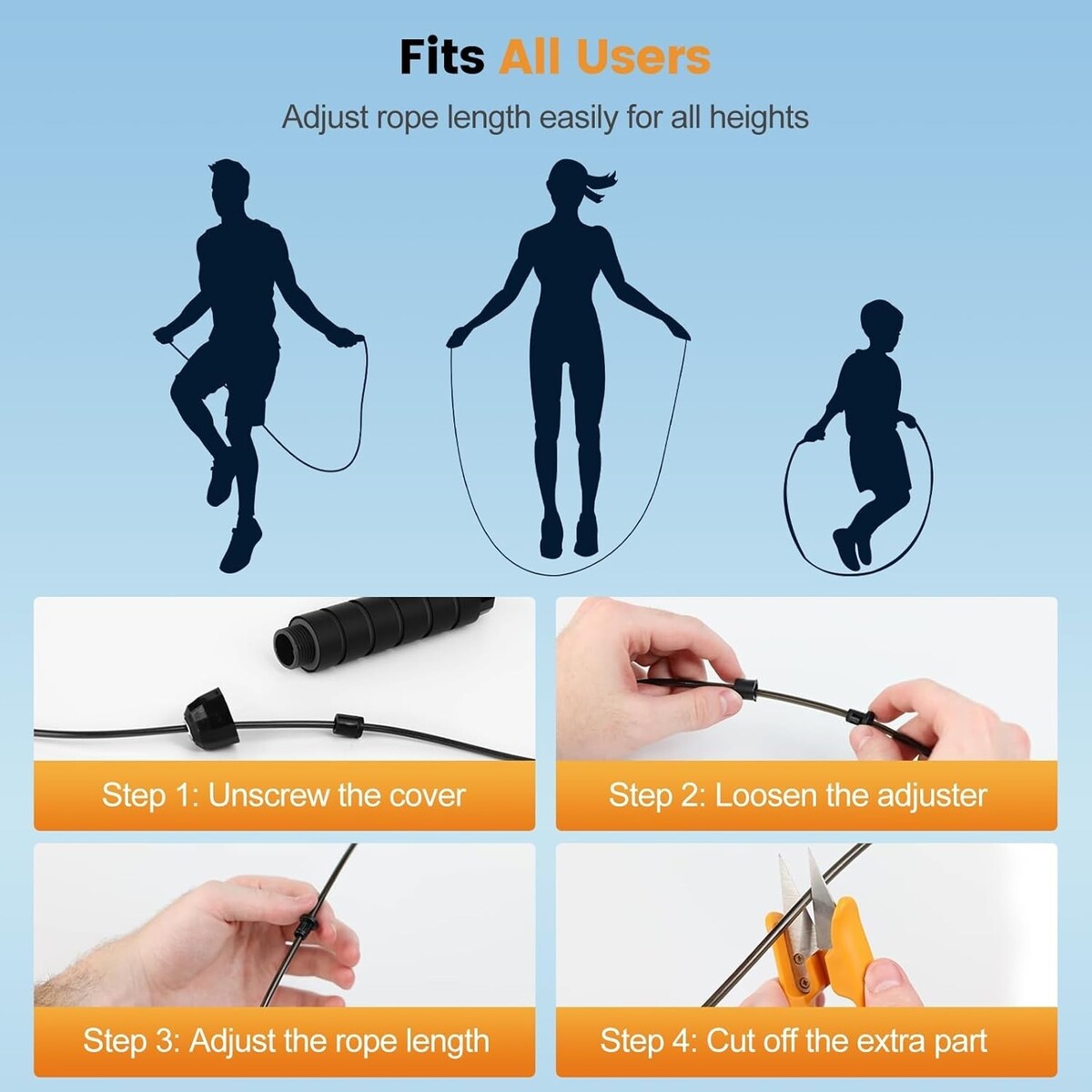 Adjustable Length: Customizable rope length suitable for all heights?perfect for kids, teens, and adults, whether beginners or experienced jumpers.