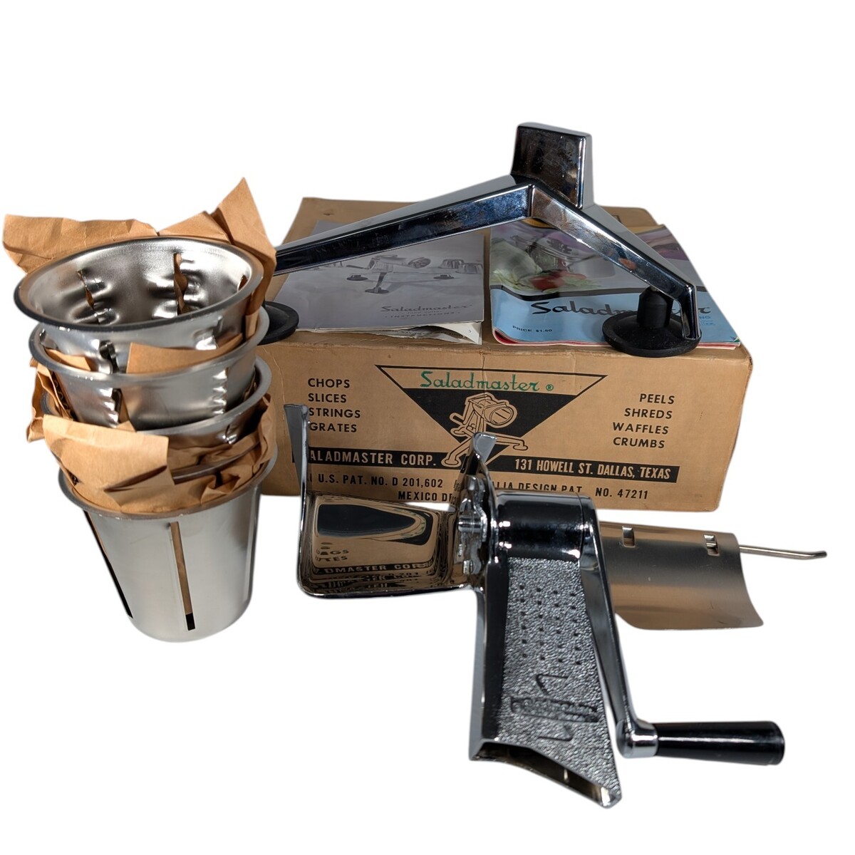 1979 Vintage Salad Master Food Cutter Processor Grater 5 Cutting Cones Excellent