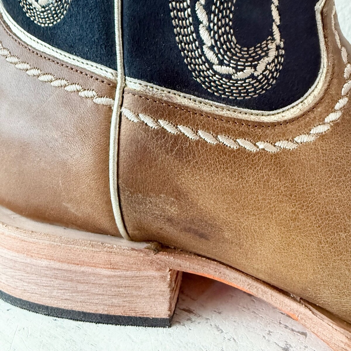 LIMITED EDITION - Lane RODEO HOUSTON Mens Cowboy Boots in Desert Clay Brown Leather and Navy Suede with a Western Square Toe and a 13" Mid Calf Shaft.