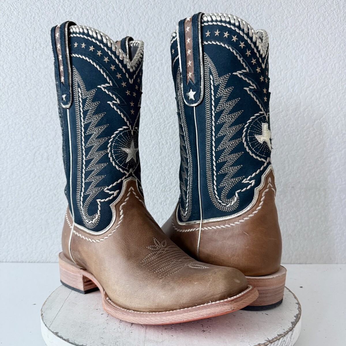 Lane Rodeo Houston Mens Cowboy Boots Brown Navy Leather Square Toe Size 11