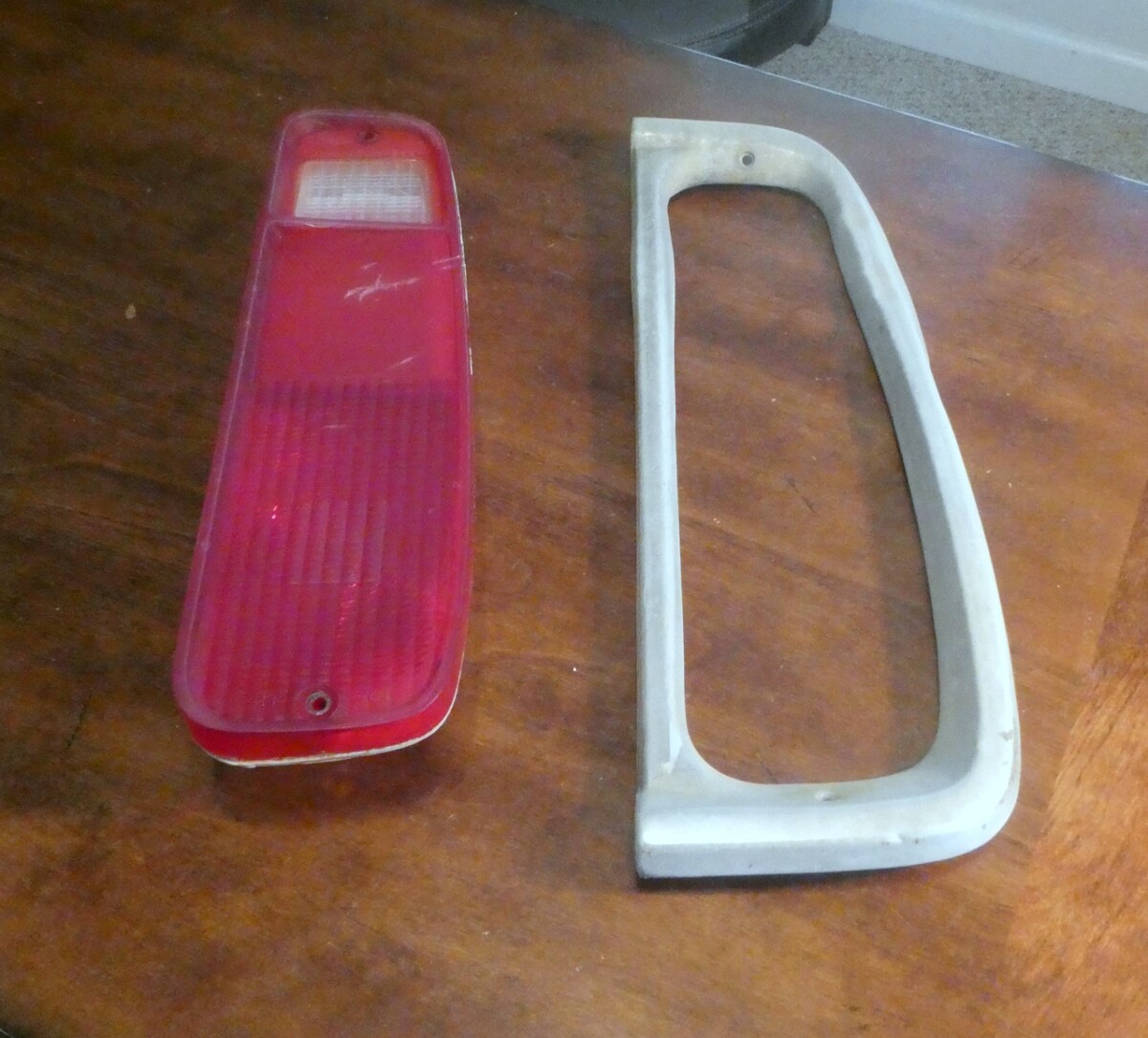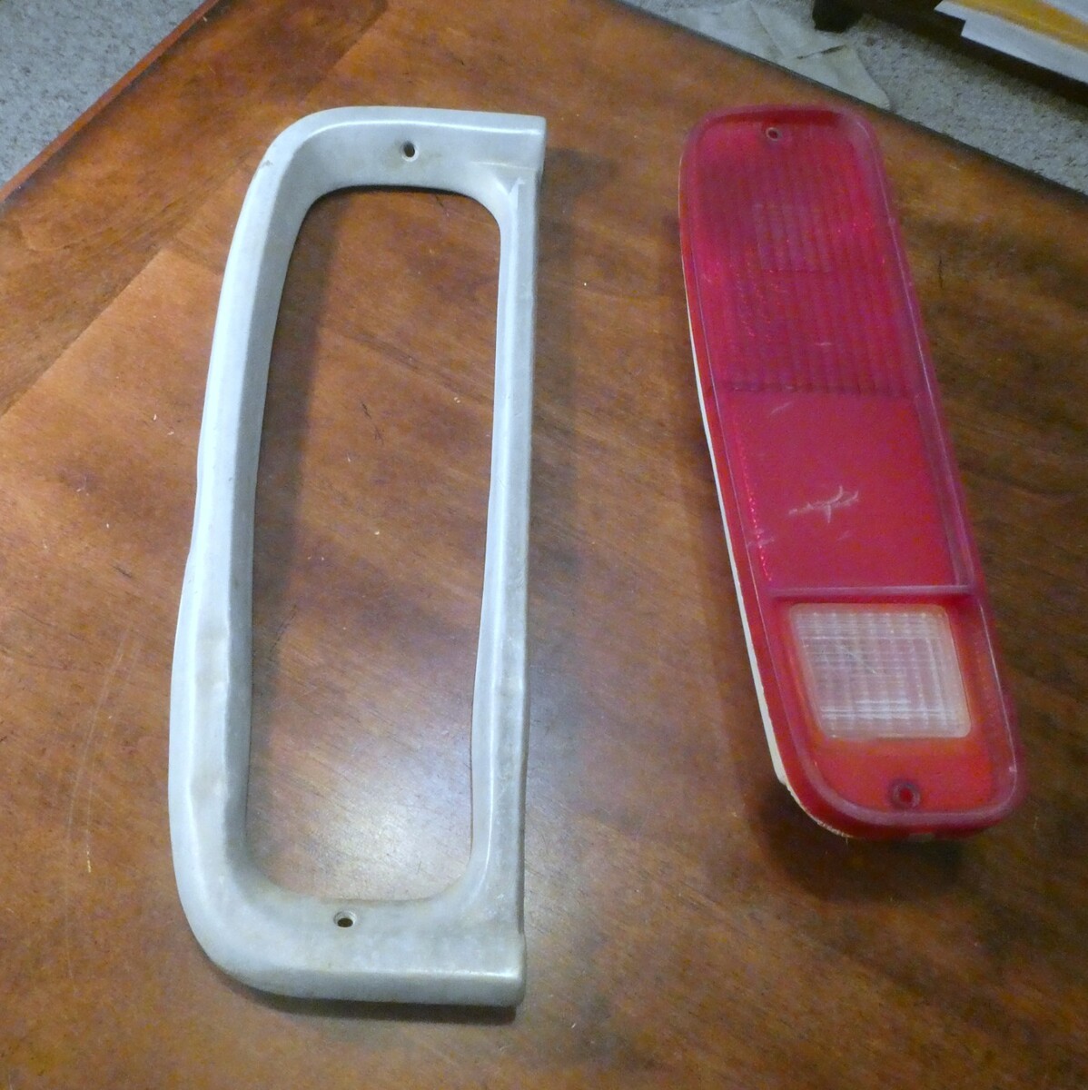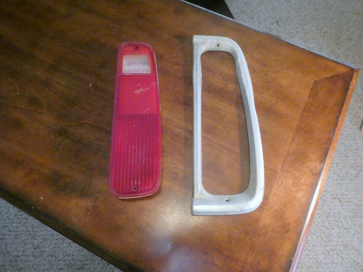 1973 1979 Ford Truck F100 Taillight Lens Housing with Bezel LH Hand driver side. Has a few dents in the bezel, there are some scratches/ imperfections. Tail light housing has a small cracks on the back side as shown in the pictures.