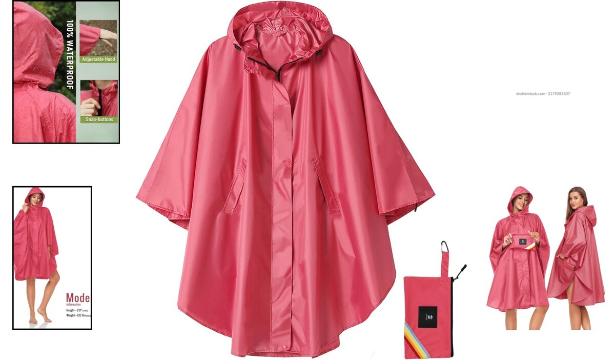 Durable Rose Red Raincoat - Portable Hooded and 19 similar items