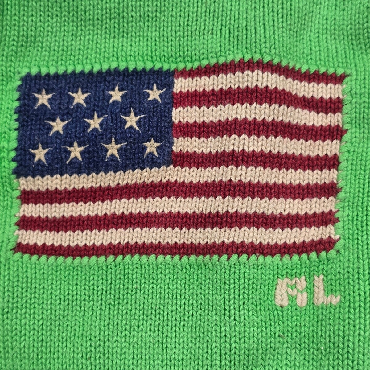 Ralph Lauren Baby Green Iconic American Flag Cotton Knit Sweater 12M VTG Y2K