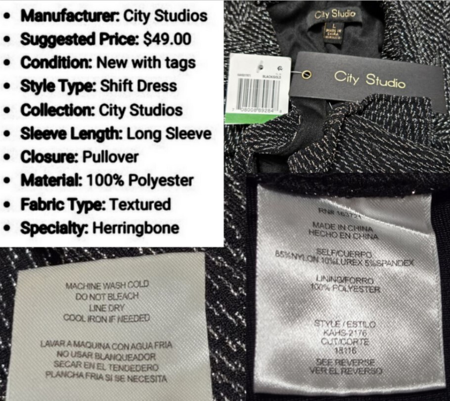 City Studios Women Juniors Herringbone Blouson Shift Dress (Large) NWT