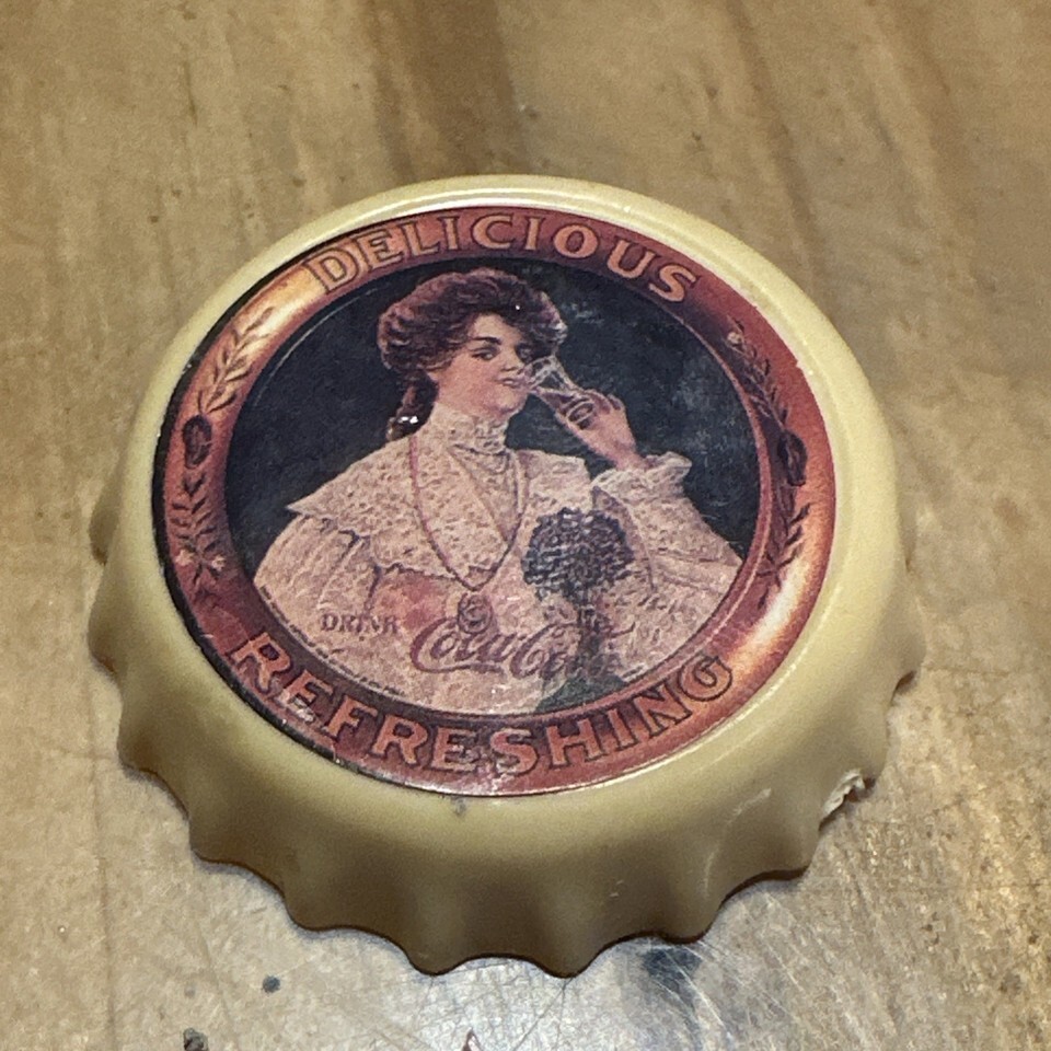 VTG 90's “Delicious Refreshing” Drink Coca Cola Bottle Cap Refrigerator Magnet