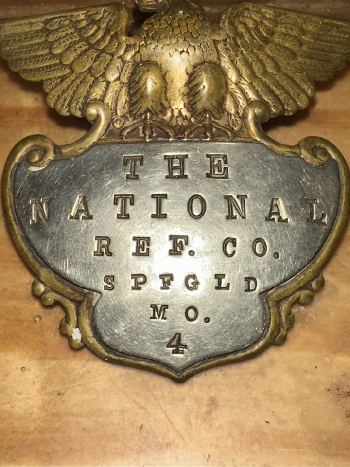 ORIGINAL ANTIQUE NAMED CAP BADGE FROM Springfield Mo # 4