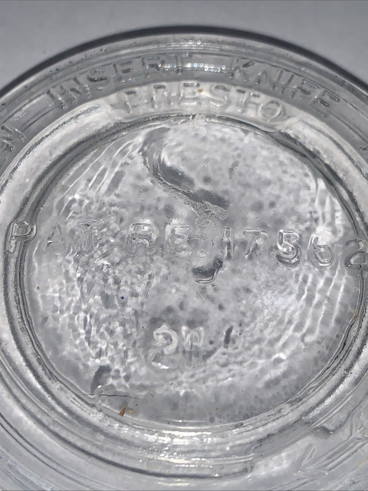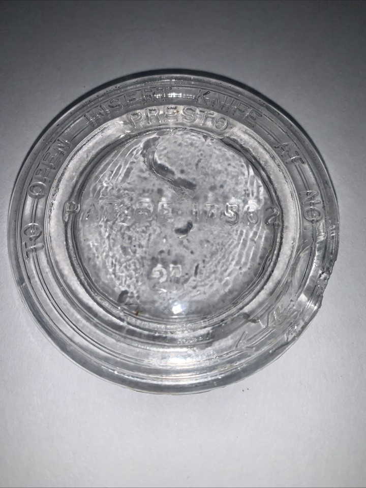 Vintage Presto glass canning jar lid Pat. Re. 17562 21 In Center And Chipped Rim