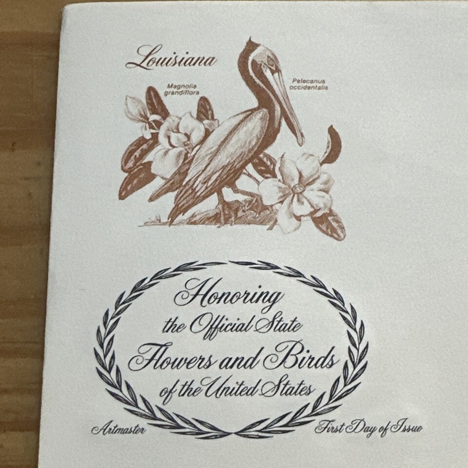 The USA Artmaster FDC from 1982 features a design showcasing the state flowers and birds of Louisiana. This collectible item originates from the United States and is considered used, with an ungraded quality. The cancellation type is First Day of Issue, adding to its appeal for enthusiasts of bird-themed philately. The piece is uncertified, making it a unique and sought-after item for collectors of United States postal history.