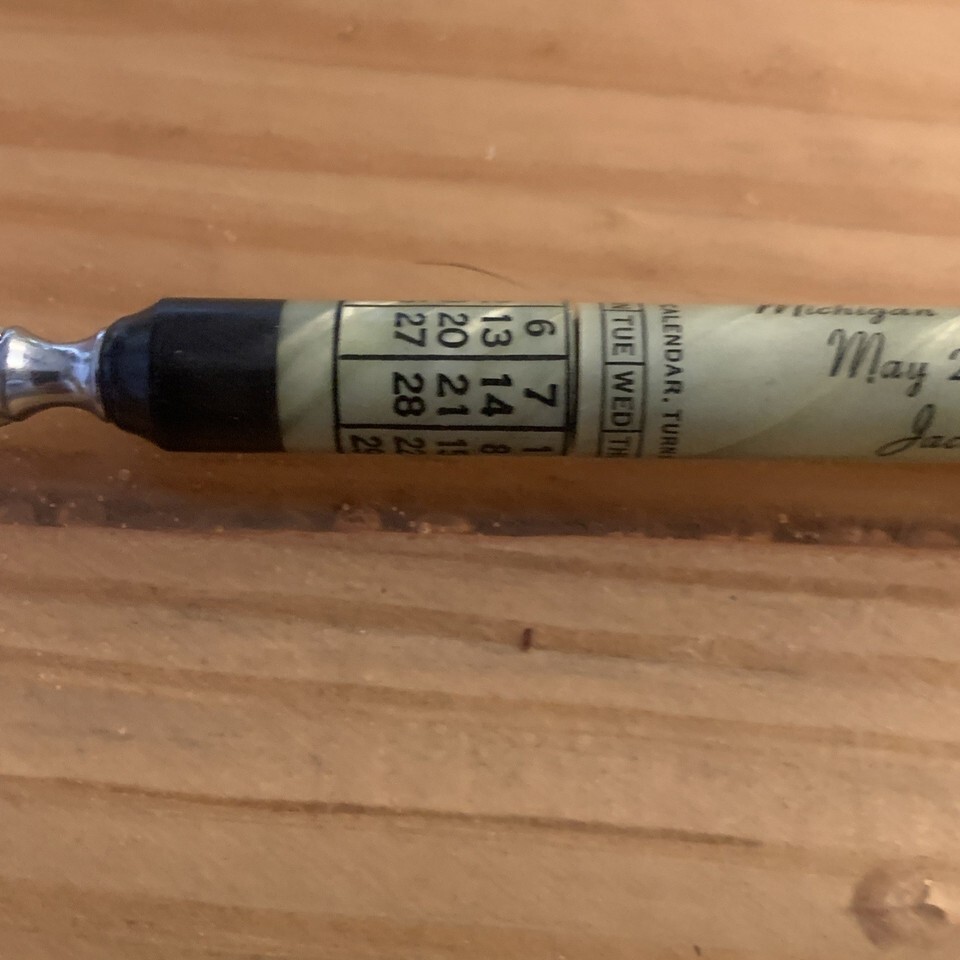 The product is a vintage letter opener from the 1959 25th Annual Convention of the Michigan Well Drillers Association. May 26 27 28 1959 in Jackson Michigan.This original piece features an ivory color and was created in 1953, making it a rare and unique collectible item for those interested in advertising memorabilia or vintage drilling industry artifacts.