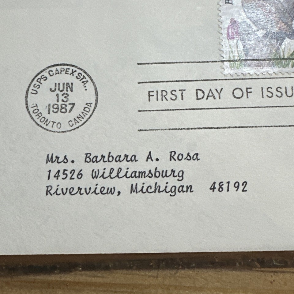 The American Wildlife Mail Cover FDC Bobwhite 1987 features a 22 cent denomination stamp from the United States, showcasing a colorful design of a bird on an envelope. This collectible item originates from the United States and is a first day cover, making it a unique and special addition to any stamp or wildlife collection. With its vibrant multi-color design and certification as an uncertified used stamp, this piece captures the essence of American wildlife and history.