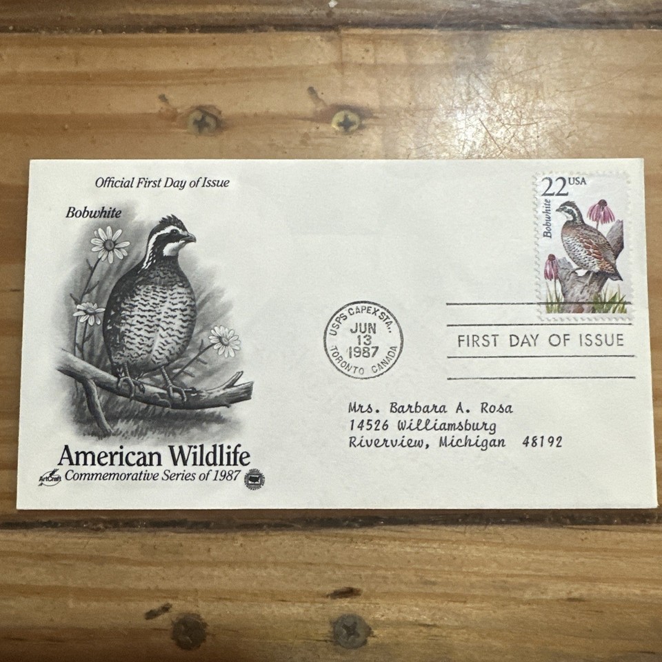 American Wildlife Mail Cover FDC Bobwhite 1987