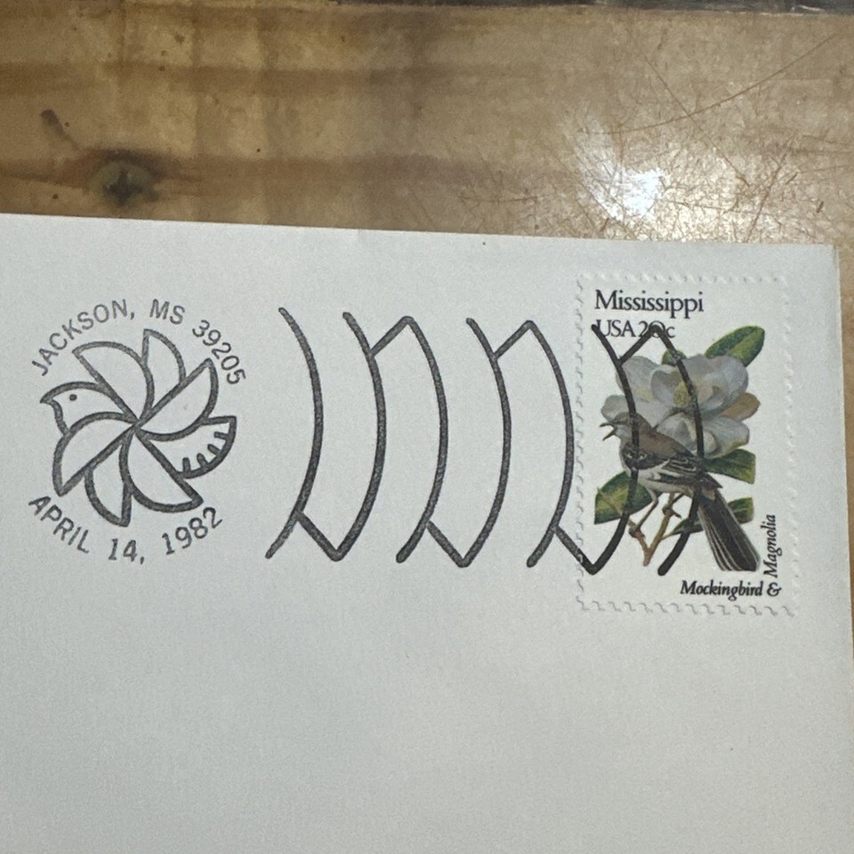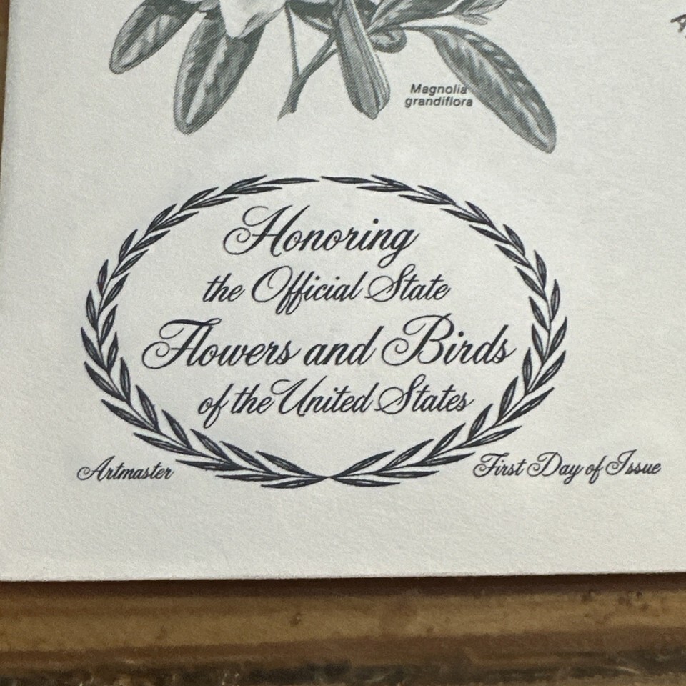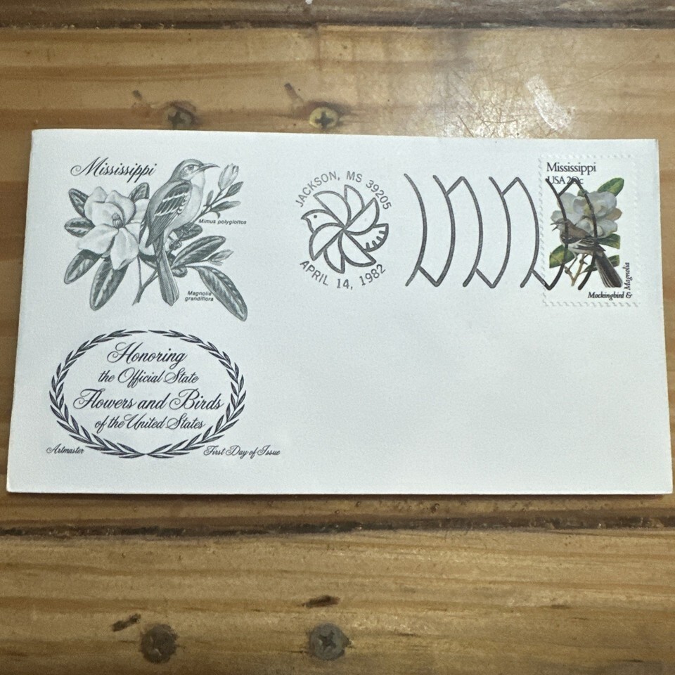 The product is a US postage stamp featuring State Birds and Flowers from Mississippi, specifically designed by Artmaster Cachet. This 20 cent stamp showcases a multi-color design with a focus on birds and flowers, making it a visually appealing and collectible item for stamp enthusiasts. The cancellation type indicates that it was issued on the First Day of Issue, adding to its value and rarity as a used postage stamp from the United States.