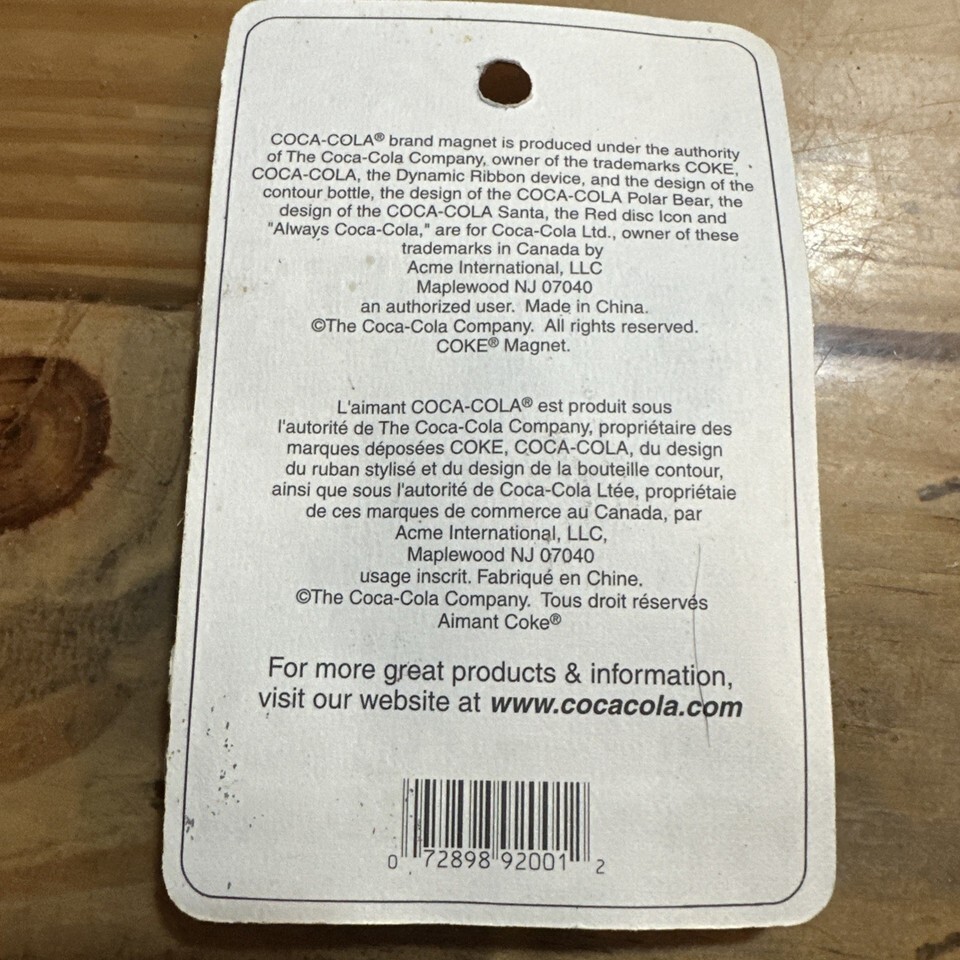This vintage Coca-Cola five cent magnet from 1995 is a collectible decor piece perfect for any soda enthusiast's collection. Featuring the iconic Coca-Cola branding and advertising theme, this multi-color magnet is a nostalgic and original addition to any home or office decor. The magnet captures the classic charm of the Coca-Cola soda brand, making it a desirable item for collectors of vintage advertising memorabilia.