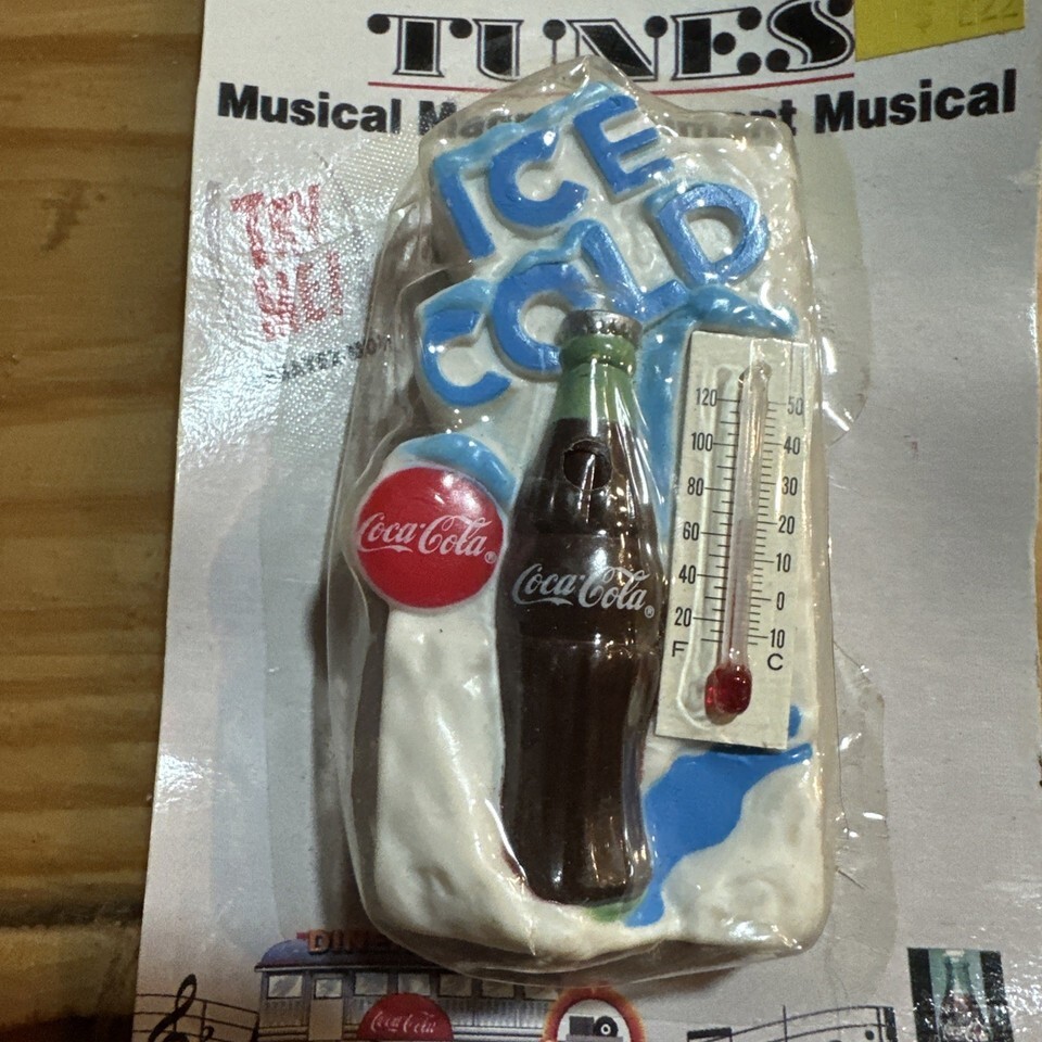 The product is a new sealed 1997 Coca-Cola Tunes Musical Magnet Bottle. This collectible item features a Coca-Cola theme and is a unique piece of advertising memorabilia. The magnet bottle plays a musical tune and is sure to evoke nostalgia for fans of the iconic soda brand. Perfect for collectors or enthusiasts of Coca-Cola memorabilia, this item is a fun and quirky addition to any collection.