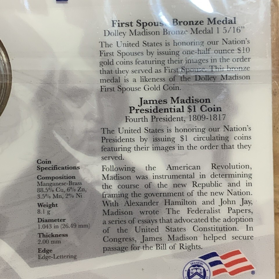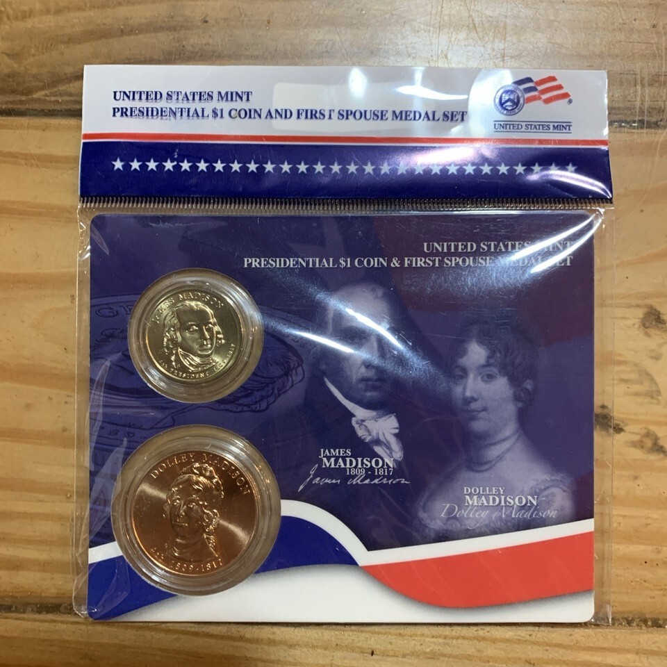 2007 US Mint Presidential $1 Coin 1st Spouse Medal Set James & Dolley Madison