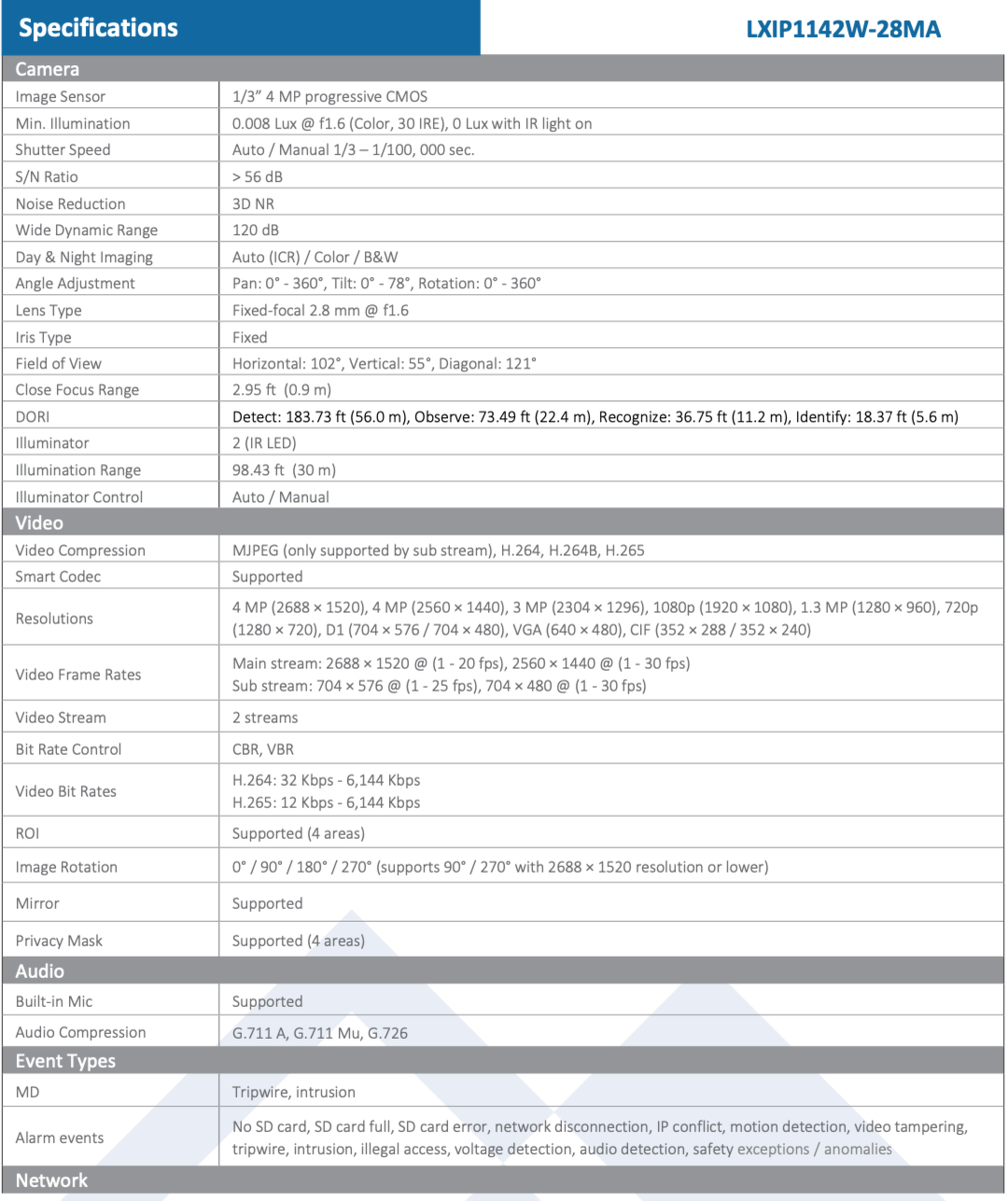 LXIP1142W-28MA IP 4MP 2.8mm Lens Starlight and similar items