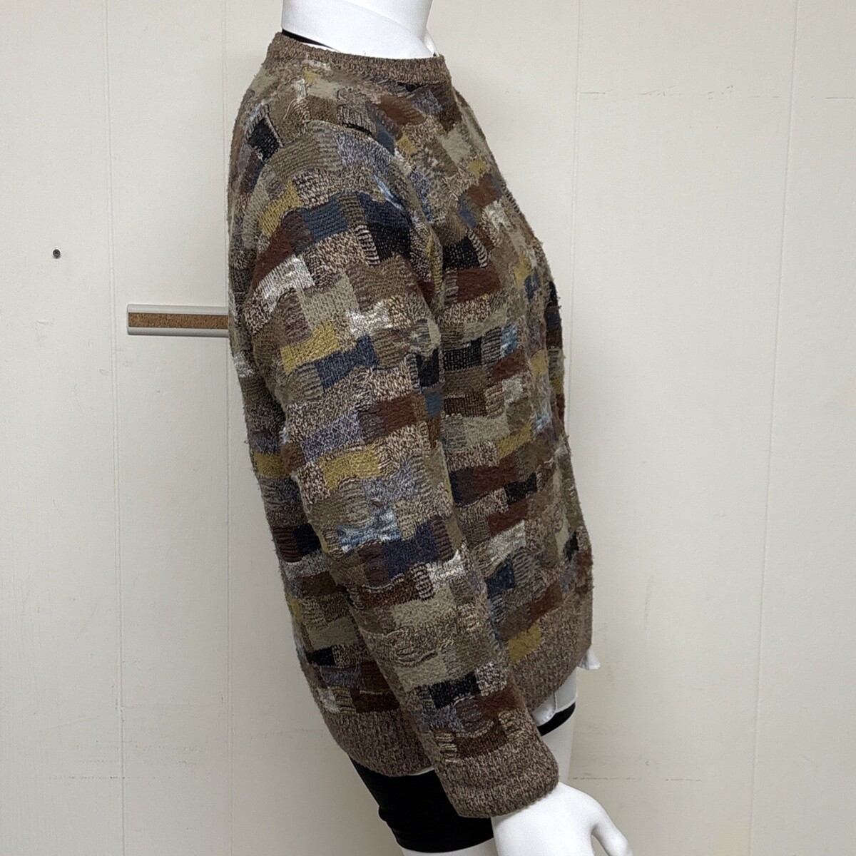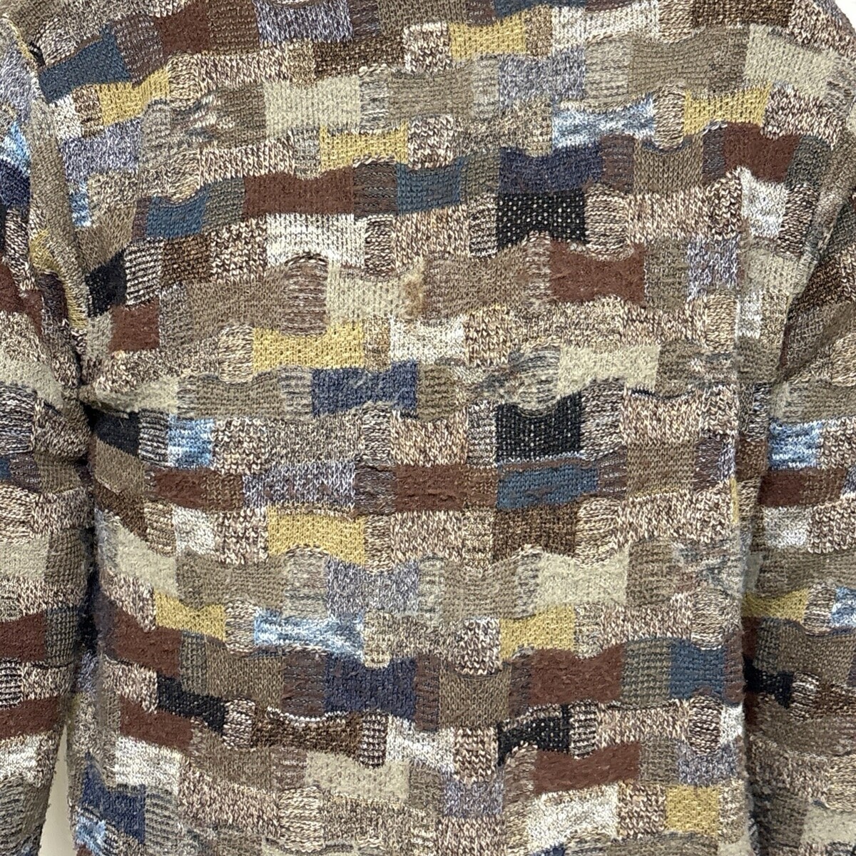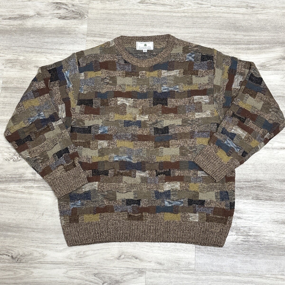 Carroll & Co Wool Blend Sweater Mens 40 M Patchwork Brown Blue Crewneck Pullover