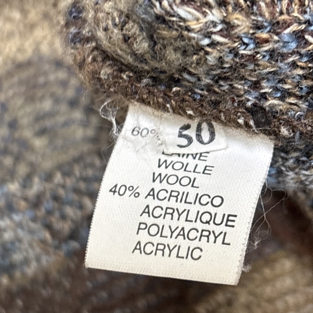 60% wool 40% acrylic texturized knit with nubs and swirls