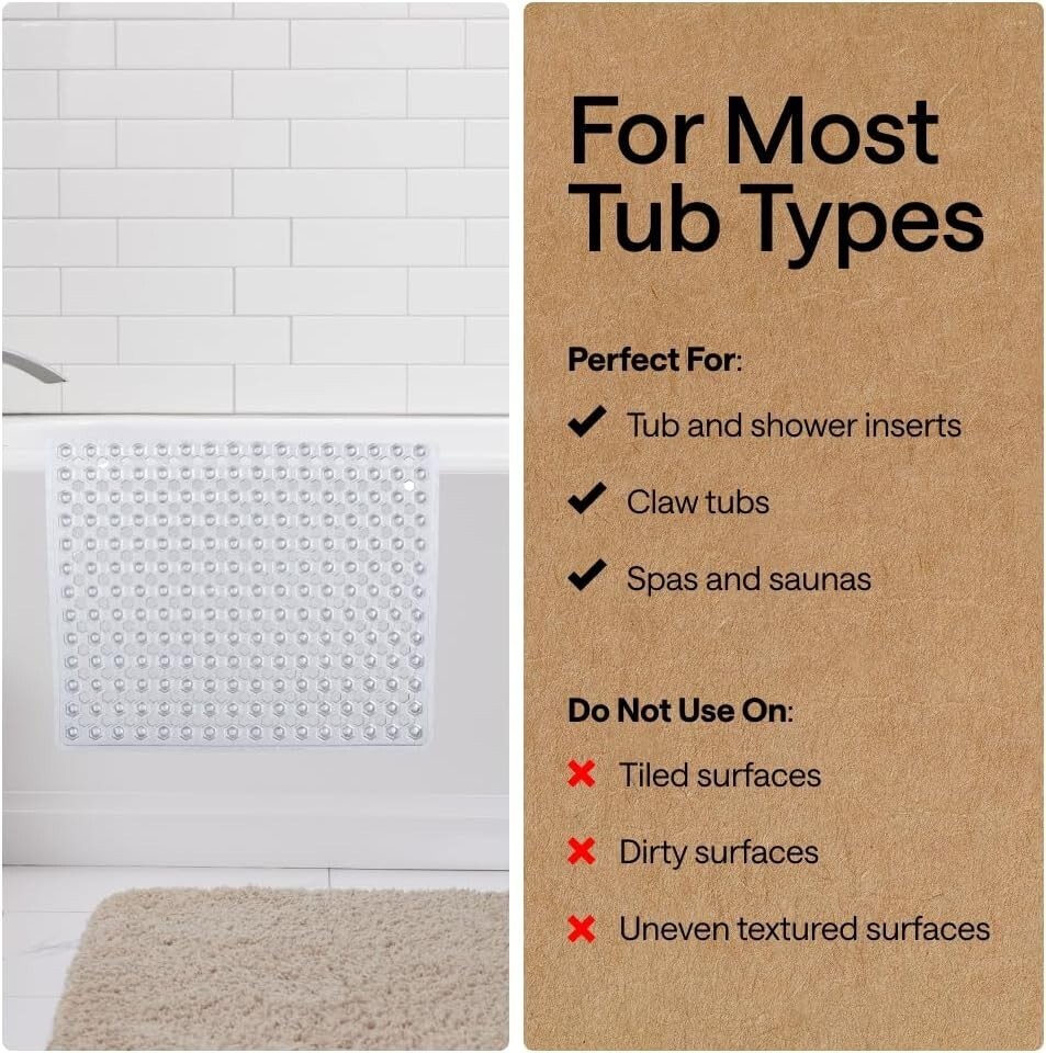 Patented Design: Experience unparalleled stability with our unique bath mat, engineered to stay securely in place with hundreds of powerful suction cups.
