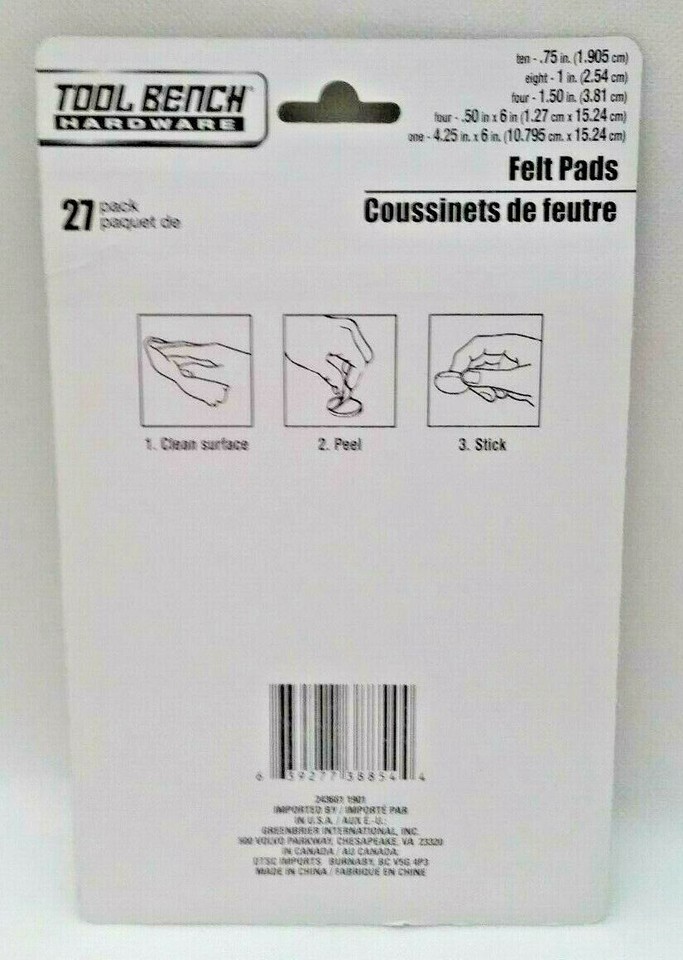 (2Pk) BRAND NEW SEALED PACKED ~ TOOL BENCH HARDWARE FELT PADS 27/pack = Total 54