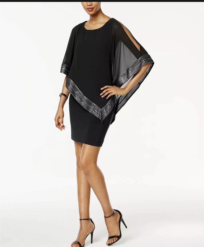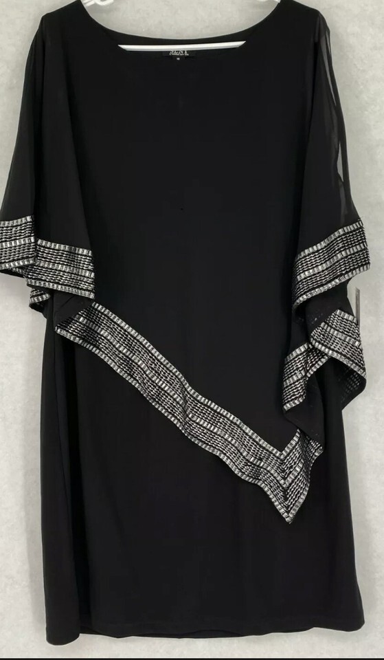 New! SLNY Foil Trim Popover Dress in Black Silver Capalet Sheath Size 14 BNWTS.