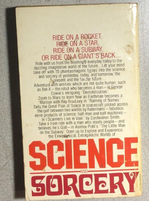 SCIENCE AND SORCERY (1978) Zebra fantasy paperback anthology
