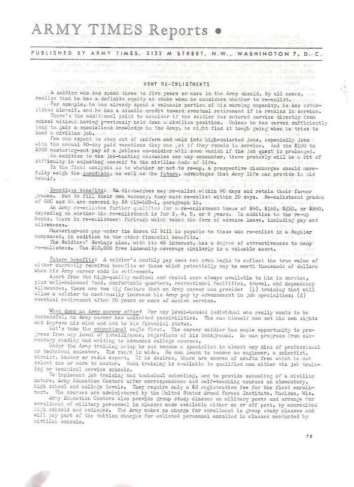 ARMY TIMES REPORTS 1953/1954 2-page newsletter