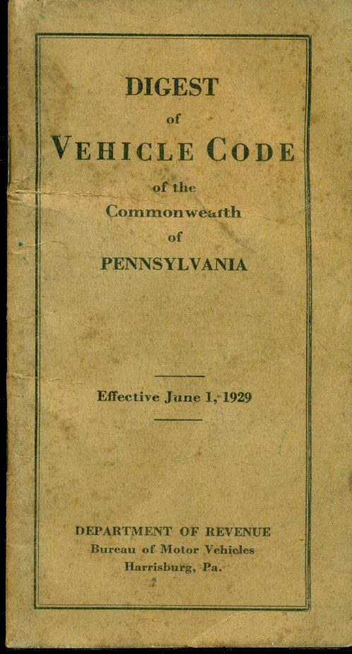1929 DIGEST OF VEHICLE CODE OF THE COMMONWEALTH OF PENNSYLVANIA (Harrisburg)