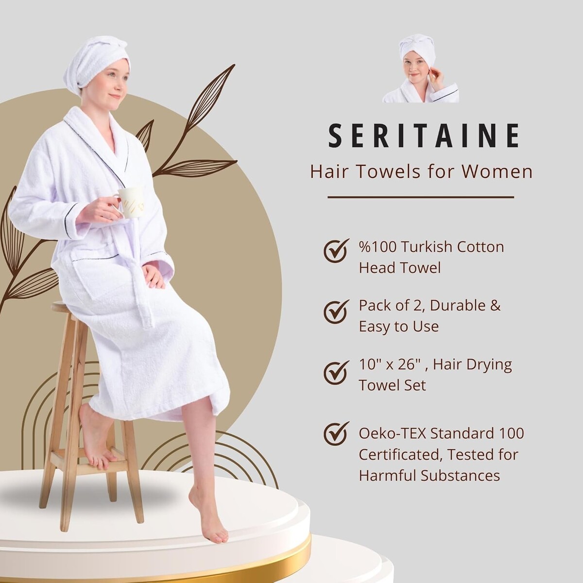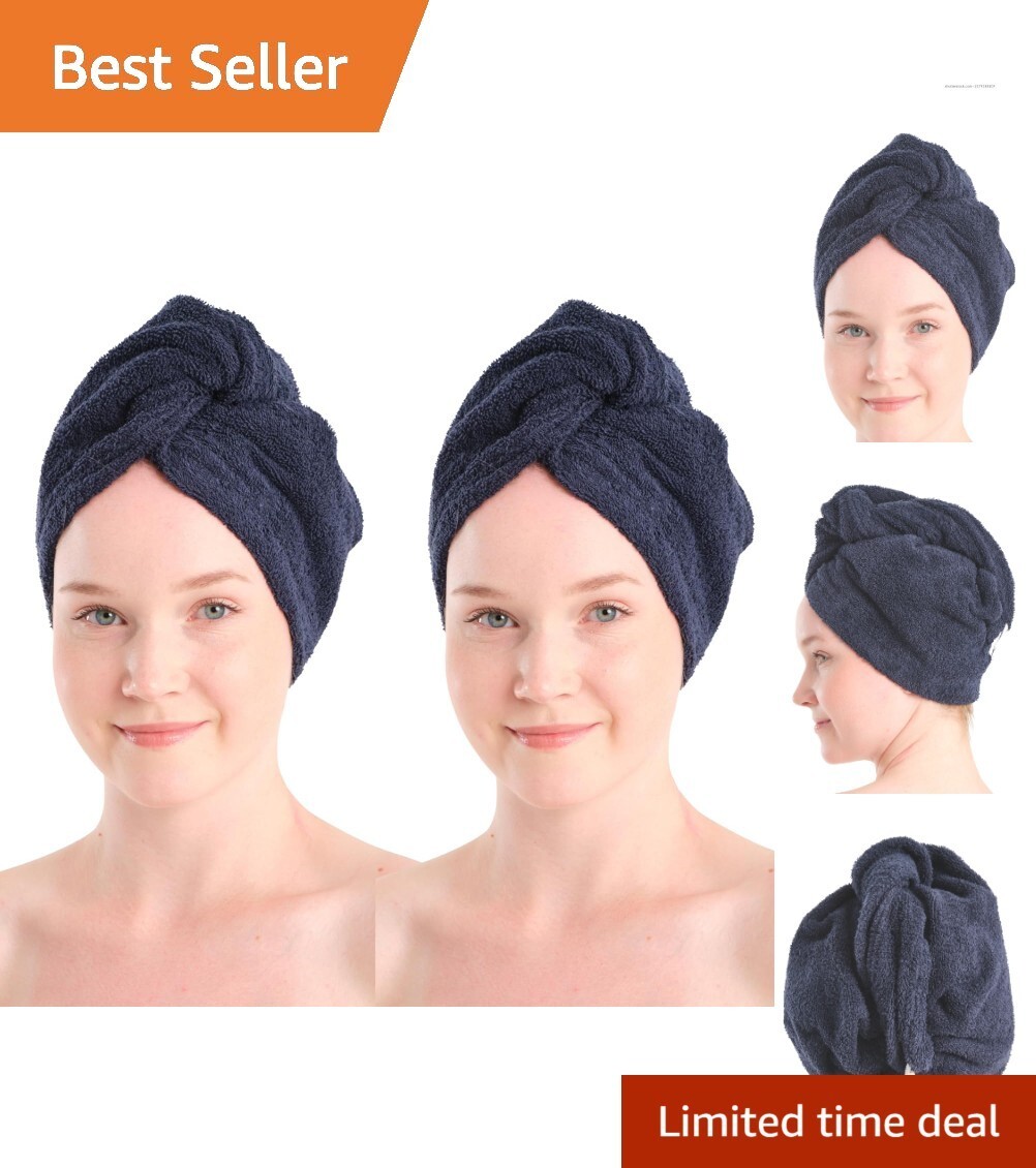 Luxury 2 Pack Hair Towel Wraps - Quick Dry, Soft Turkish Cotton, 10x26 inches