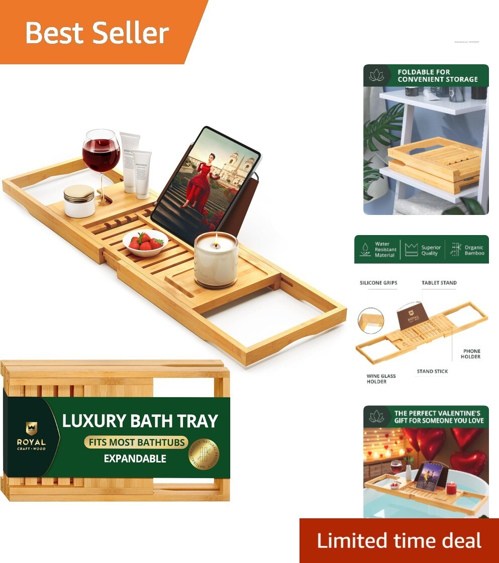 Collapsible Bamboo Bath Caddy Tray - Stylish and Functional Bathtub Accessory