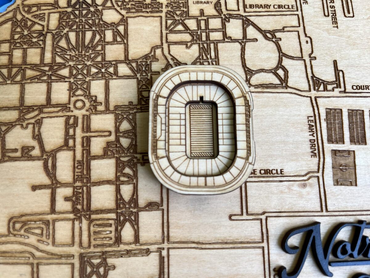 Notre Dame Stadium 3D Wooden Map Wall Art, South Bend Indiana Campus Layout, Fra