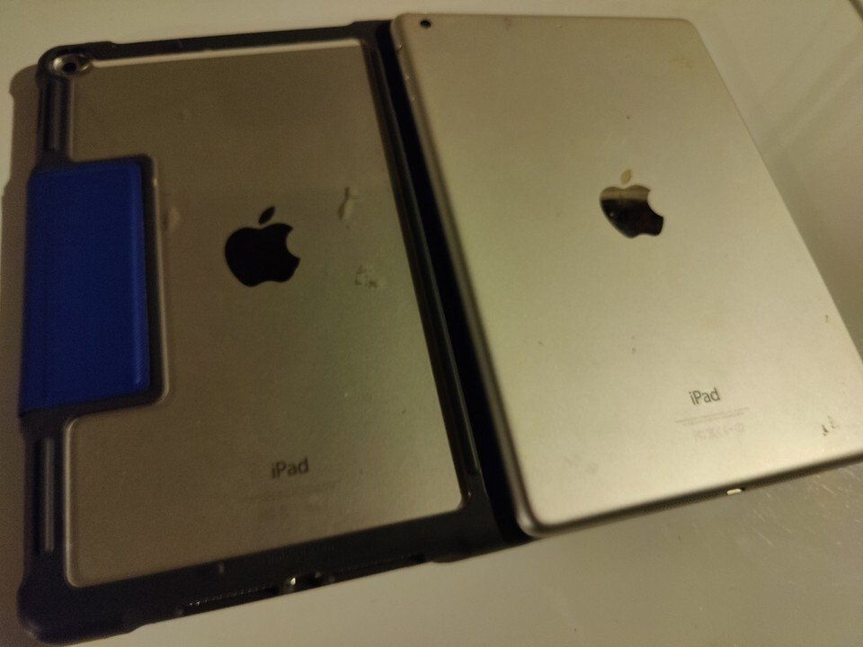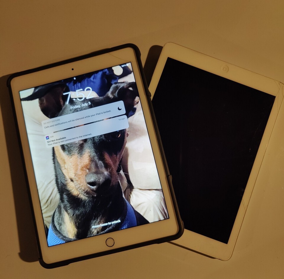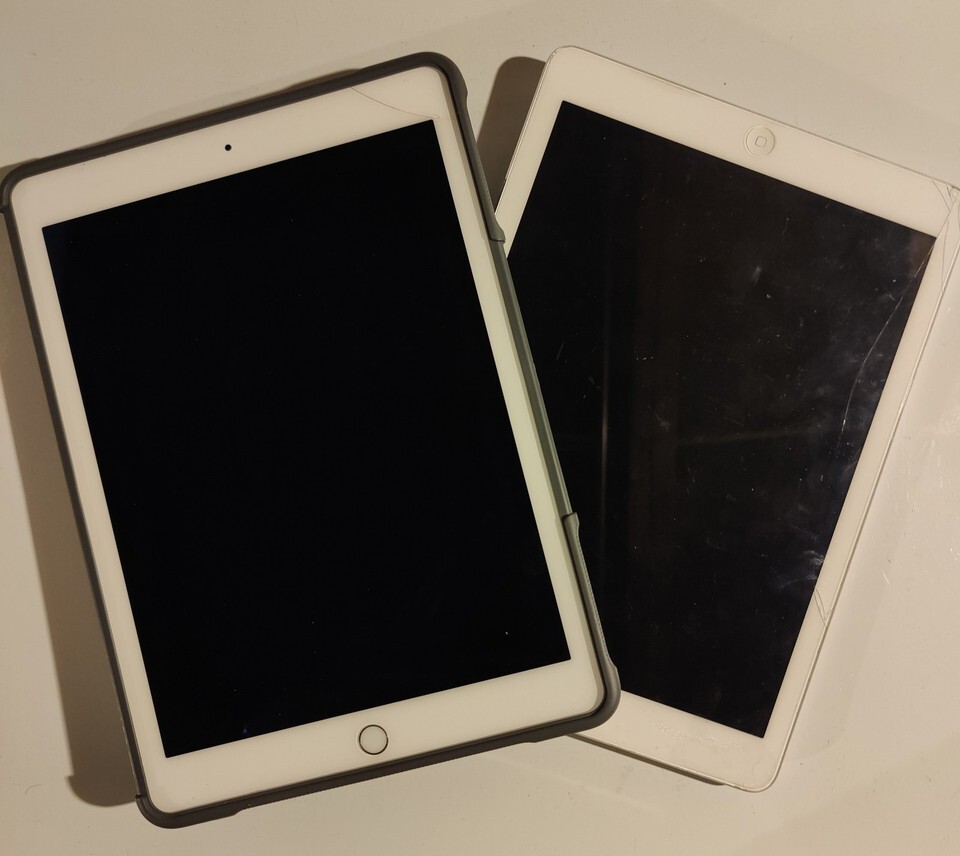 White ipad (on the right) - doesn't boot, screen cracked. Cause unknown.