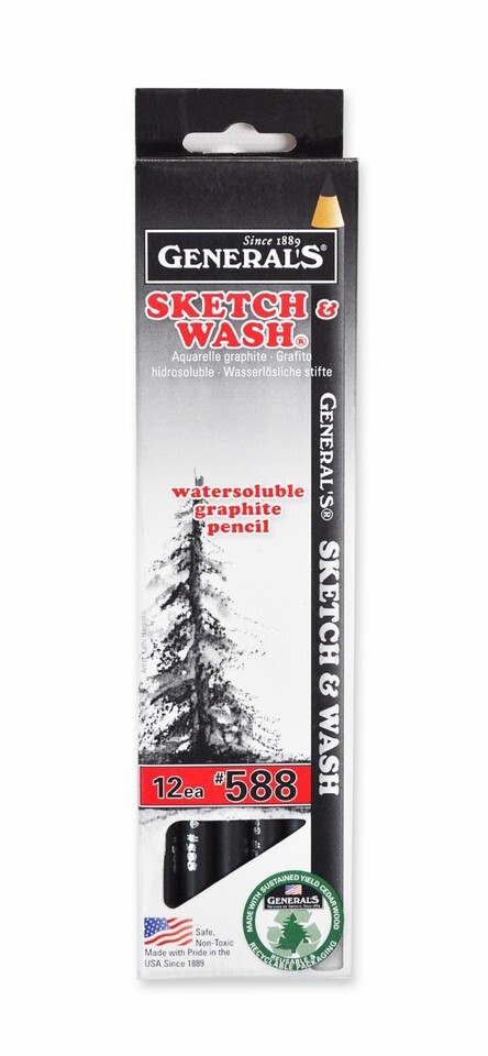An artist favorite for sketching and drawing because it can be used wet or dry. An extra smooth graphite, General's Sketch Wash cores are bonded to the wood with exclusive Carbo-Weld bonding process for added strength and reliablity. Handcrafted with responsibly harvested, sustained yield incense cedar wood to ensure smooth sharpening and strength.