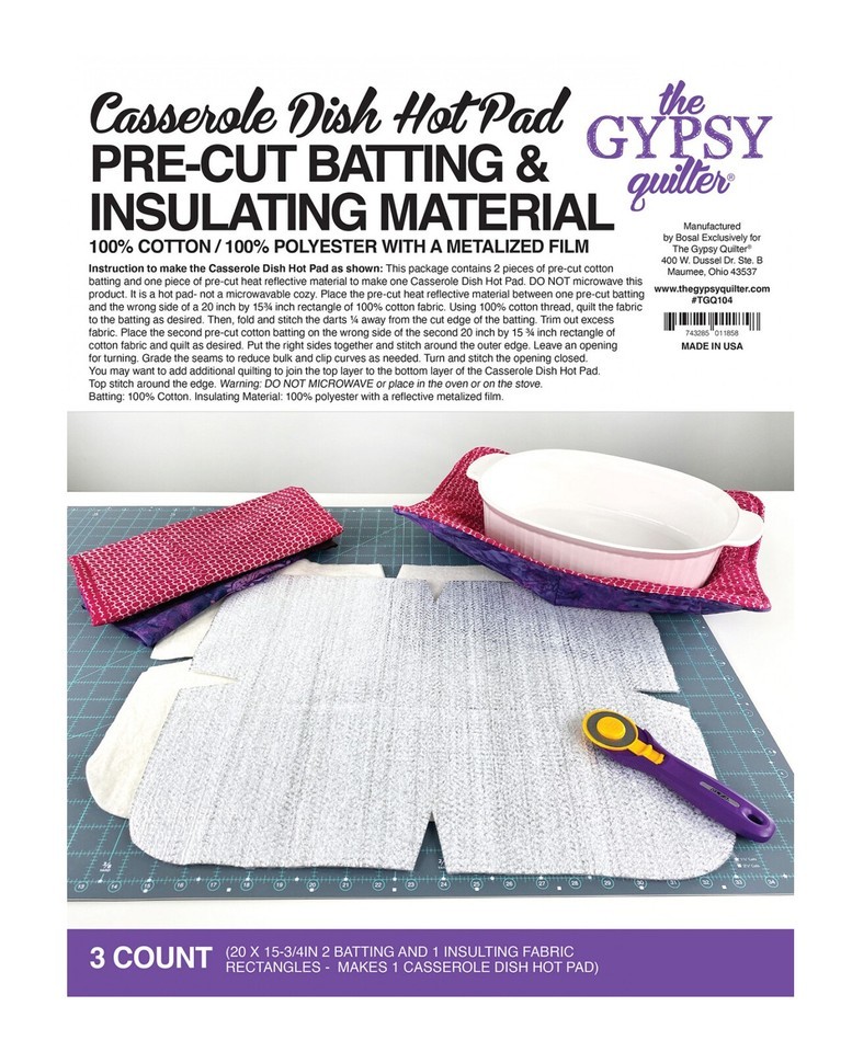 The Gypsy Quilter Casserole Dish Hot Pad Pre Cut Batting.