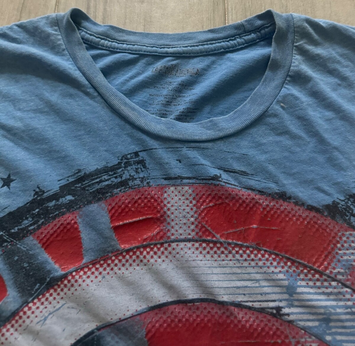 Captain America Men's Graphic Tee Size XL Washed Blue Short Sleeve Cotton GUC