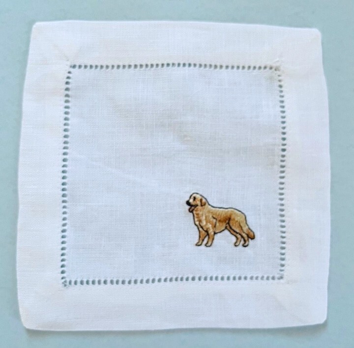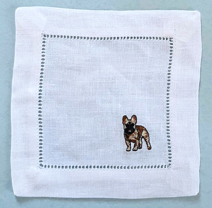 Sferra Puppies Embroidered Cocktail Napkins 100% Linen 6x6" SET/4 New
