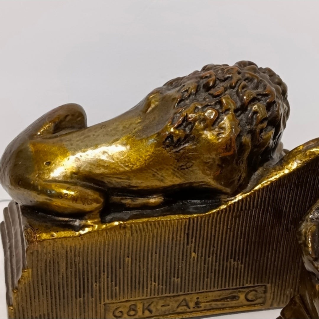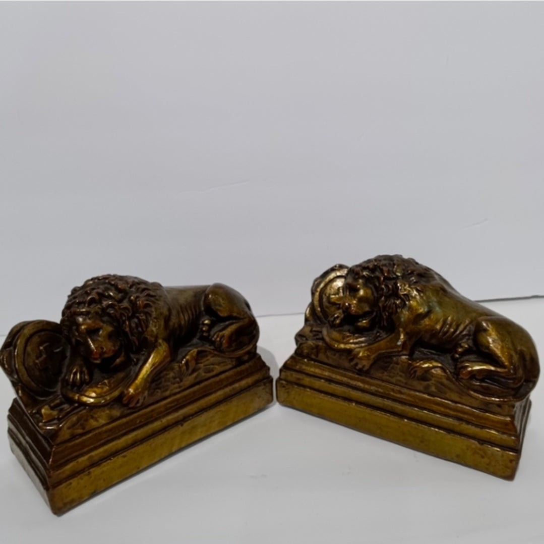 Vintage Lion of Lucerne Bookends Pair Heavy Cast Brass Metal Swiss Lion Bookends