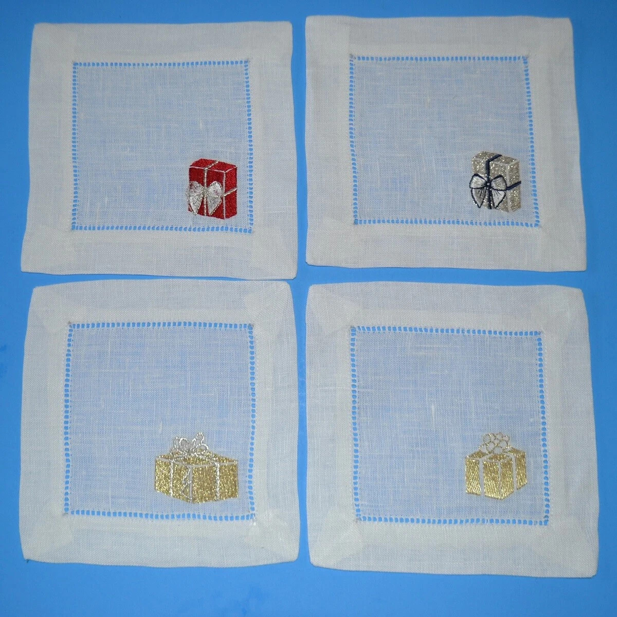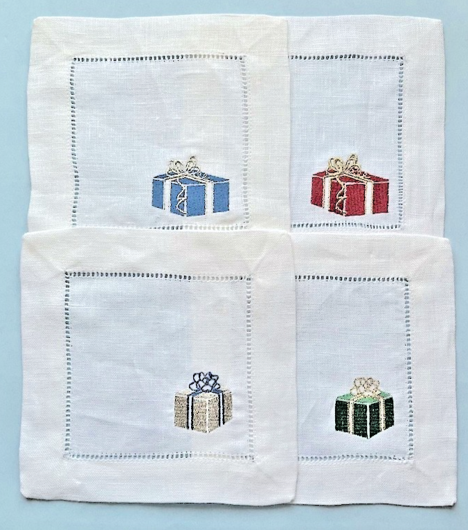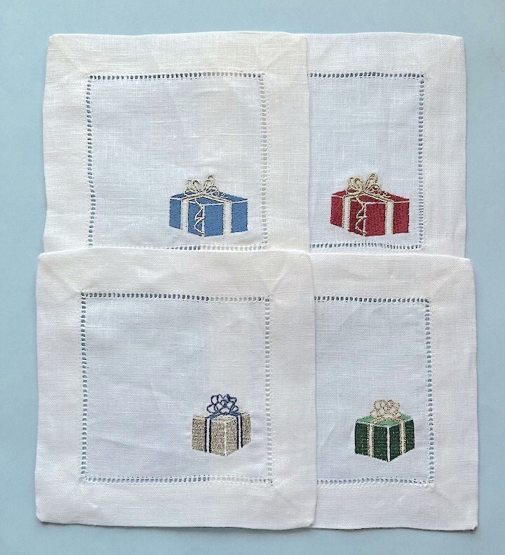 these hemstitched cocktail napkins are adorned with