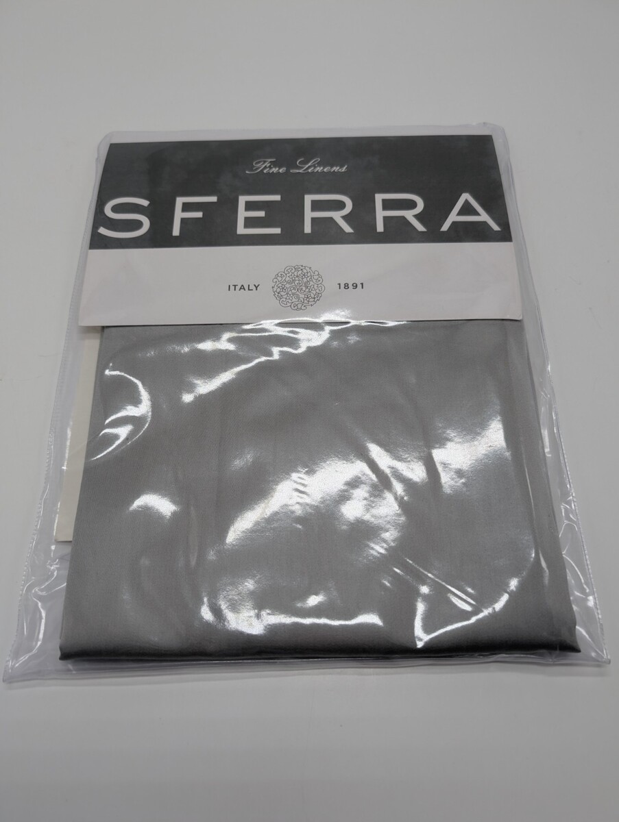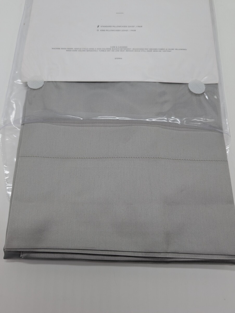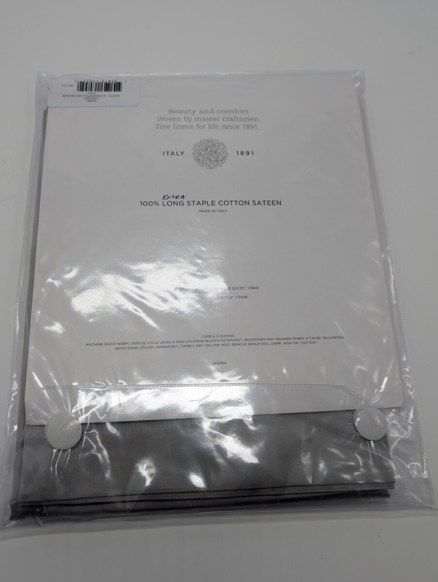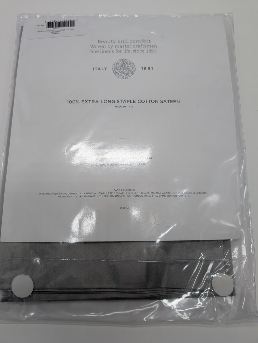 Sferra Giotto Flint Standard Pillowcases (2) Gray Solid Cotton Sateen Italy NEW