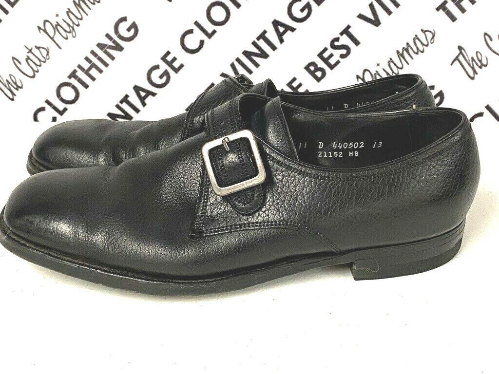 Vintage Florsheim Leather Shoes Monk Strap Buckle Classic Black Men's 11D 1970s