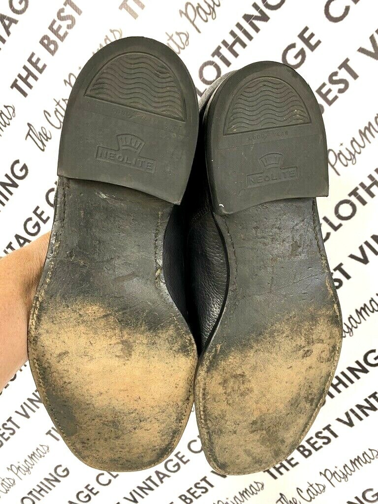 Vintage Florsheim Leather Shoes Monk Strap Buckle Classic Black Men's 11D 1970s with Leather soles, very good condition!