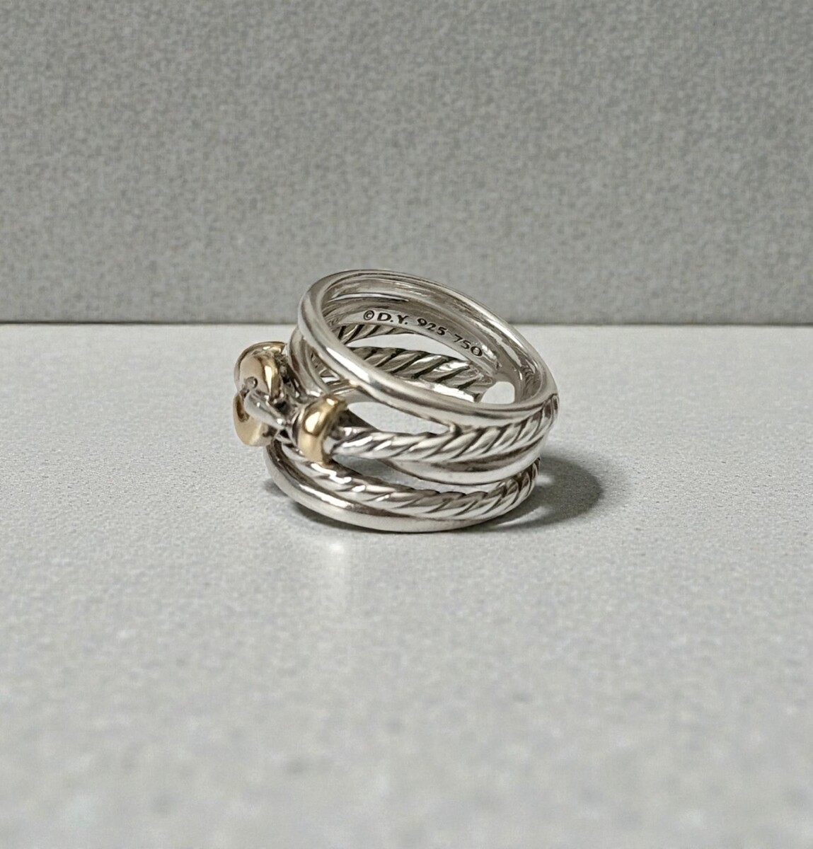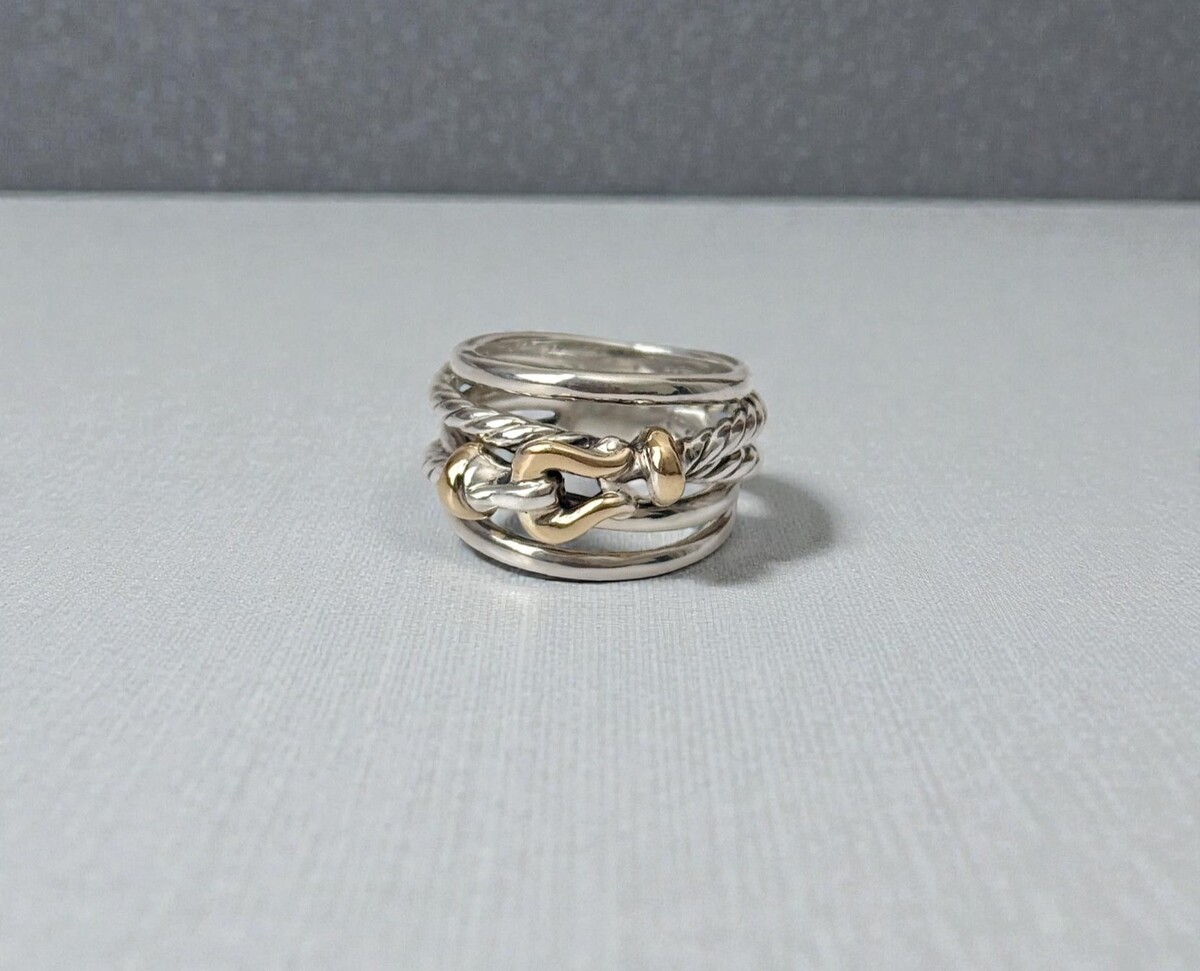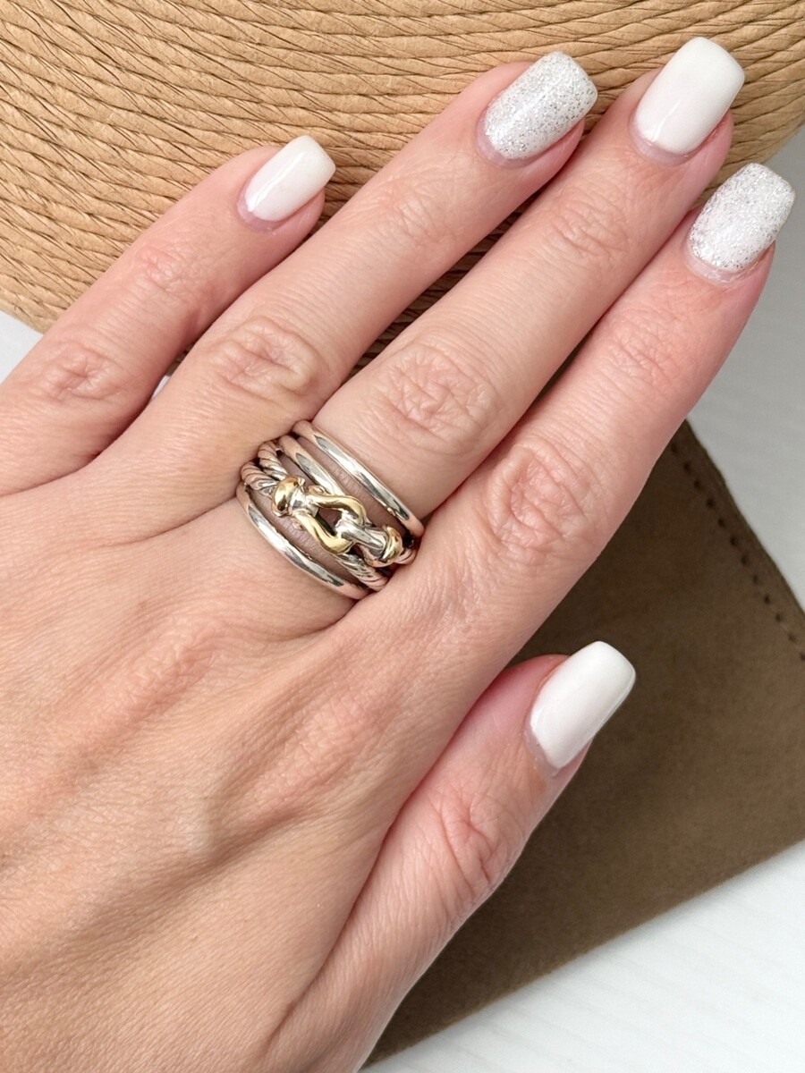 David Yurman .925 Sterling Silver 18K/750 Yellow Gold Buckle Crossover Ring
